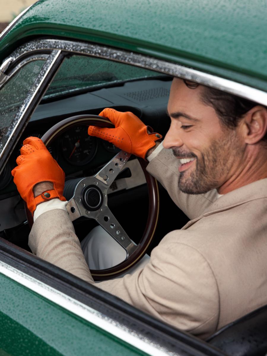 GUANTES DE CUERO NARANJA PARA HOMBRE Guantes de piloto para hombre - Naranja / Natural
