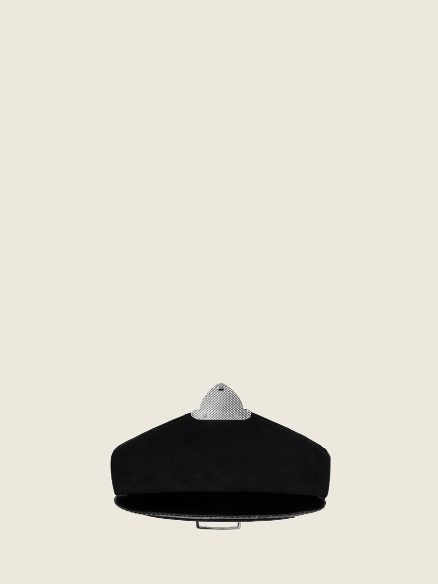 Llevado al hombro o cruzado gracias a su correa a juego, se desliza con sencillez en cualquier movimiento.
